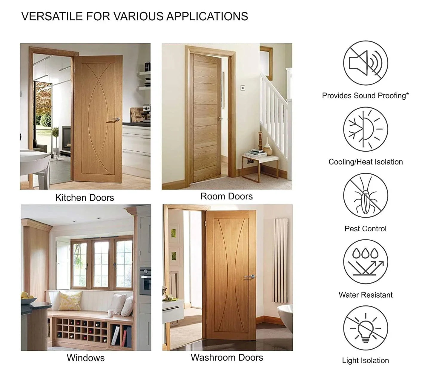 Lower Electric Bills: Stops cold and hot air from escaping. Reduces energy use and saves money on cooling and heating costs every month.